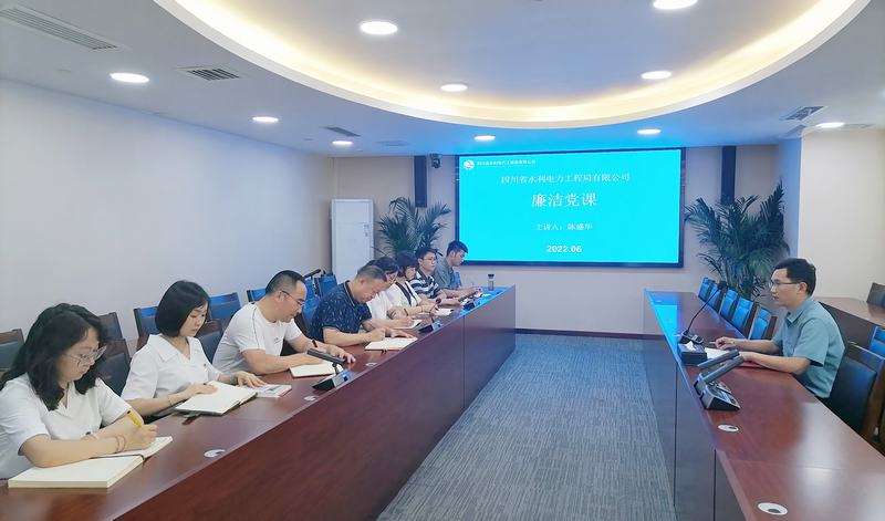 2022年6月8日,公司黨委委員、紀委書記陳盛華為公司紀委委員、紀委辦公室人員、機關第二黨支部青年理論小組成員上了一堂題為《樹牢廉潔意識 加強廉潔自律》的專題廉潔黨課。