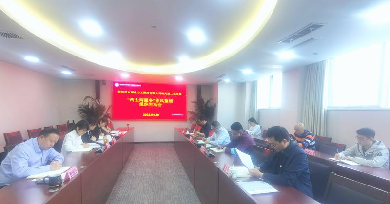 2022年4月20日,公司機關第二黨支部組織支部黨員在公司總部會議室(資陽辦公區黨員在301會議室以視頻形式參加)召開“兩去兩服務”作風整頓組織生活會。公司黨委書記、董事長代勇,黨委專職副書記唐驚濤,黨委委員、紀委書記陳盛華,黨委委員、工會主席夏永紅以普通黨員身份參加會議。工會副主席、機關第二黨支部書記付麟麗主持會議。二支部涵蓋部門非黨員列席組織生活會。