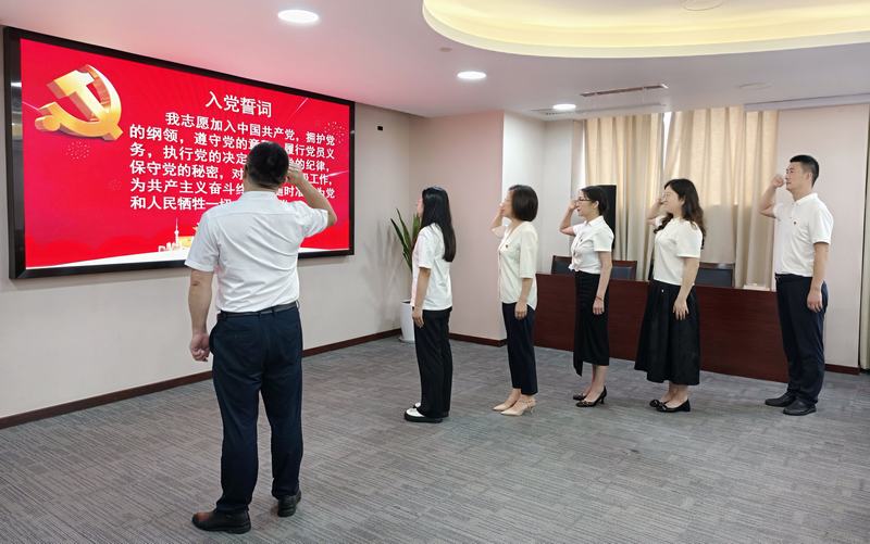 會上,全體參會人員肅穆而立,齊唱國歌,莊嚴而自豪的神情訴說著對黨103周年華誕的美好祝福。支部黨員高舉右拳,莊嚴宣誓,重溫入黨誓詞,鏗鏘有力的宣誓表達了對黨的無限忠誠和崇高敬意。支部書記為過政治生日的黨員送上了學習書籍,希望他們繼續堅定理想信念,不忘初心使命,充分發揮好先鋒模范作用。