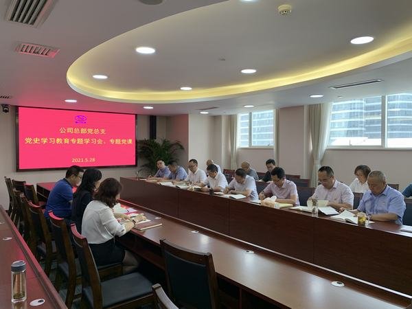 2021年5月28日下午,公司總部黨總支在公司總部會議室召開了黨史學習教育專題學習會及專題黨課,公司黨委書記、董事長代勇,黨委委員、副總經理茍仕聰,黨委委員、紀委書記陳盛華以普通黨員身份參加會議,大會由支部書記蔣其萍主持。