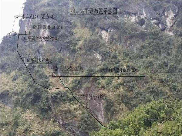 金雞峽水庫(kù)壩址勘探平硐大多位于較高陡峭懸崖上,在6個(gè)平硐中,只有5#平硐在公路旁,其余5個(gè)平硐均位于半山腰高差30m~170m不等,需搭設(shè)人行棧道方能達(dá)到洞口位置。1#平硐位于玉溪河河床以上約30m的左岸山體上,人工搭設(shè)棧道約160m;2#平硐位于右岸公路以上約70m,人工搭設(shè)棧道約100m,為保證出渣安全,另搭設(shè)出渣通道約60m;3#、4#平硐分別位于玉溪河河床以上約170m、100m的左岸陡峭山壁上,上山通道約400m;6#平硐位于右岸公路以上約140m。