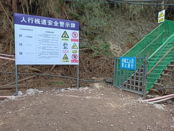 根據(jù)現(xiàn)場(chǎng)作業(yè)環(huán)境,將安全管理規(guī)范化。必要的安全警示標(biāo)識(shí)、安全標(biāo)語(yǔ)口號(hào),必須有、必須立,營(yíng)造安全生產(chǎn)氣氛,讓視覺(jué)化教育潛移默化員工行為。臨空臨水陡壁等危險(xiǎn)地帶必要的安全防護(hù)設(shè)施不能少,做到及時(shí)同步跟進(jìn)。在施工期間,安排專人每天早上對(duì)棧道進(jìn)行安全檢查,主要檢查棧道立桿和錨桿的連接情況、安全鋼絲繩連接是否牢固、扣件的螺絲是否有松動(dòng)、扣件是否有破裂、防護(hù)網(wǎng)是否有破損等。制定安全獎(jiǎng)懲制度并嚴(yán)格執(zhí)行,進(jìn)一步提高員工執(zhí)行安全管理各項(xiàng)規(guī)定的積極性。在施工生產(chǎn)例會(huì)或碰頭會(huì)上,總結(jié)安全生產(chǎn)工作情況,指出存在問(wèn)題,制定整改措施,讓安全管理壓力有效傳遞下去,讓安全管理措施及時(shí)得以落實(shí)。