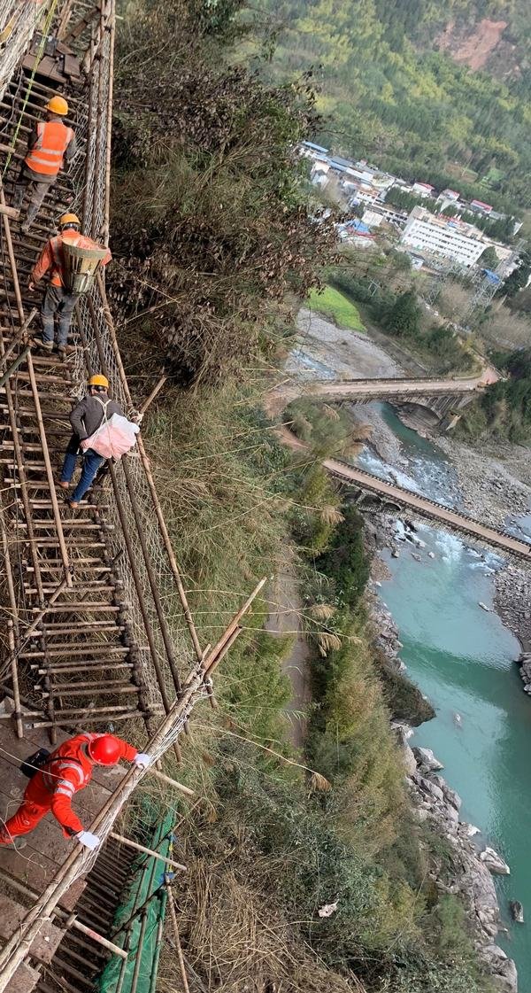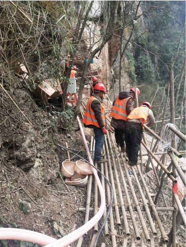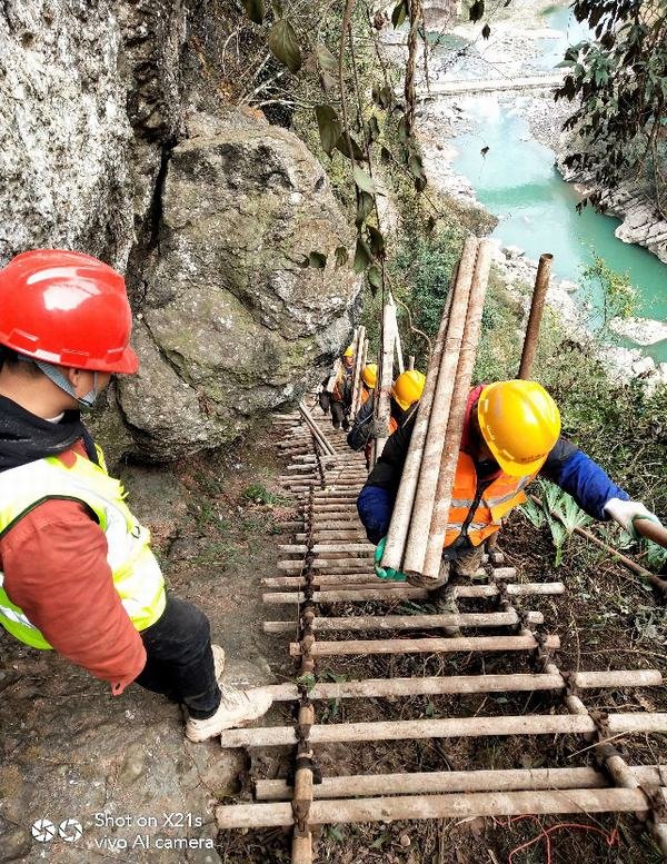 人工轉(zhuǎn)運(yùn)施工棧道材料