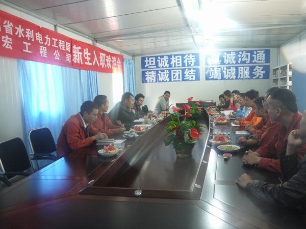 2016年7月26日下午3:00,鑫宏工程公司在固滴項目部會議室開展了新生入職座談會。出席會議的人員有:公司副經(jīng)理曹軍、項目生產(chǎn)經(jīng)理丁忠紅、鉆根生產(chǎn)副經(jīng)理陳勇、安全副經(jīng)理袁友軍,以及各部門負責人,往屆和應屆大學生等,會議由曹軍主持。