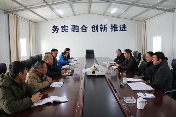 在項目部會議室,鄔清富一行聽取了七處和項目部班子的集體匯報。鄔清富指出,龍頭山水電站樞紐工程 是全局的重點工程,工期緊,壓力大。一年多以來,七處和項目部干部職工顧全大局,服從安排,克服資金、洪水、圖紙、材料、阻工和氣候等不利因素影響,精心組織,精心施工,千方百計推進工程,圓滿完成一期工程目標任務,展現(xiàn)了能打仗、打勝仗的水利鐵軍形象,鄔清富對大家的辛勤付出表示感謝。他希望七處和項目部再接再厲,提前謀劃二期工程右岸施工,做好人員、設備、材料等資源準備工作,同時加強溝通協(xié)調,爭取各方支持,力爭在春節(jié)后掀起大干快上施工高潮,確保二枯安全度汛。鄔清富強調,安全生產事關職工和民工的生命安全,事關工程局的生存發(fā)展。他要求七處和項目部認真汲取江西豐城“11•24”特大事故教訓,處理好進度與安全的矛盾,持之以恒抓好安全生產。