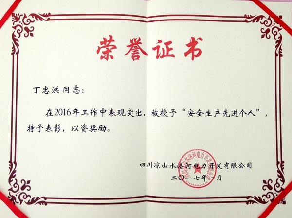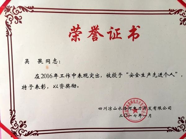 獎狀和證書是對鑫宏公司水洛河項(xiàng)目2016年安全生產(chǎn)工作的肯定和褒獎,同時也是鞭策,在2017年的現(xiàn)場安全生產(chǎn)中我們將再接再厲、更加努力,對待安全工作我們將“敬畏當(dāng)先,知行并重”!