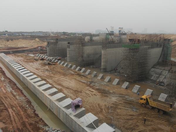 安裝間安裝間副廠房廠房機(jī)組段進(jìn)水流道(1#、2#機(jī))上游魚(yú)道反護(hù)坡尾水流道(7#、8#機(jī))下游魚(yú)道船閘下閘首二期全年圍堰上游導(dǎo)航墻消力池閘壩