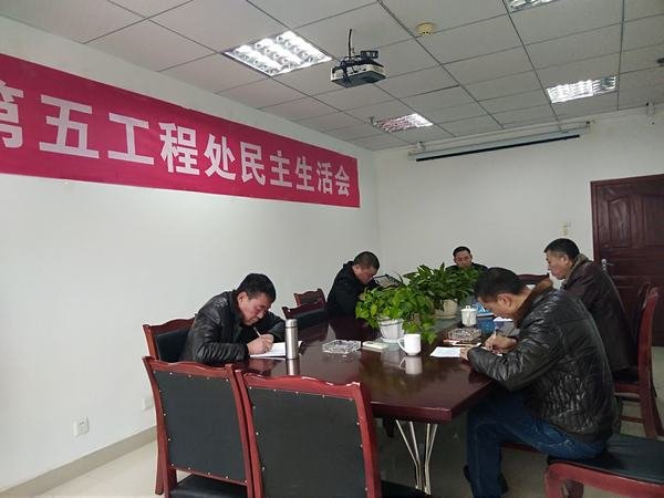 2018年1月15日下午,按照局黨委《關于召開2017年度處級領導班子民主生活會的通知》(川水電委〔2017〕62號)文件精神,局第五工程處2017年度處級領導班子民主生活會在五處資陽機關會議室召開。會議由支部書記袁小峰主持,五處全體班子成員參加會議。