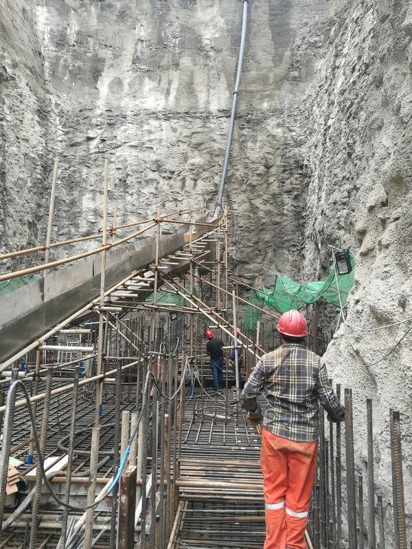 威遠(yuǎn)引長入連取水樞紐工程項(xiàng)目部自3月14日進(jìn)場以來,在工程局領(lǐng)導(dǎo)和局相關(guān)部門的關(guān)心和指導(dǎo)下,在業(yè)主、設(shè)計、監(jiān)理、政府等各方支持協(xié)調(diào)下,項(xiàng)目部克服取水豎井邊坡高、開挖面狹窄、不能采取爆破開挖、村民長時間阻工等困難及不利因素影響,積極主動采取各種辦法解決困難,通過采取挖機(jī)鉆、破碎錘、大型勾機(jī)與挖掘機(jī)配合強(qiáng)制開挖石方的方式,堅持三班作業(yè),經(jīng)過近一個半月的艱苦奮戰(zhàn),取水豎井于2018年4月27日下午開挖至設(shè)計高程,完成了20多米高的豎井后邊坡及45米高的深井開挖和支護(hù),為工程的進(jìn)一步推進(jìn)奠定了堅實(shí)的基礎(chǔ)。
