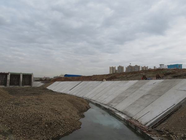 左岸防洪堤施工