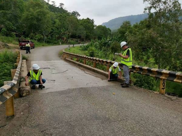 項(xiàng)目部進(jìn)場人員根據(jù)設(shè)計(jì)單位昆勘院提供的《錫林努姆項(xiàng)目檢測計(jì)劃》,對羅納1和錫林努姆兩座待改造電站進(jìn)行結(jié)構(gòu)尺寸及平面位置的測量檢查,為下一步對兩電站的改造設(shè)計(jì)提供了基礎(chǔ)數(shù)據(jù)。同時(shí),項(xiàng)目部組織人員對巴新首都莫爾茲比港至工地現(xiàn)場所有的橋梁進(jìn)行了檢查,詳細(xì)記錄每座橋梁的位置、橋面寬度及結(jié)構(gòu)形式,并初步擬定了橋梁的加固計(jì)劃,以確保項(xiàng)目施工設(shè)備及工程金屬結(jié)構(gòu)、機(jī)電設(shè)備的順利進(jìn)場。