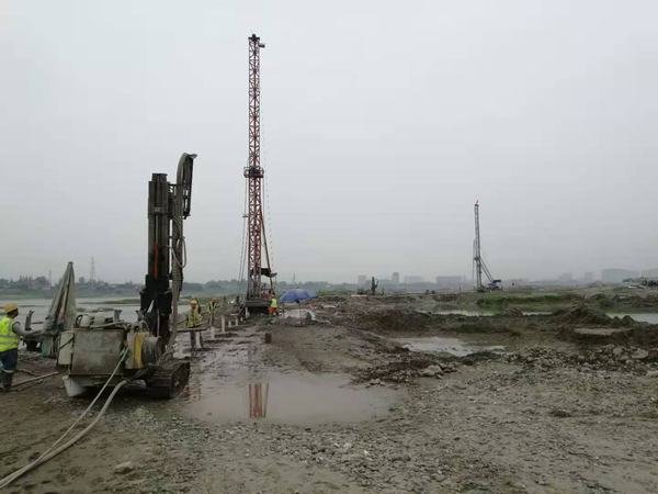 地基工程處于2020年10月初進場承擔青神縣虎渡溪航電一枯圍堰上游及縱向高噴灌漿防滲工程施工,10月8號開鉆,10月12日開噴,處項目職工團結一致、上下一心,通過精心組織,科學管理,于11月5日提前5天完成所承擔任務,共計完成鉆噴588個,高噴灌漿5018m。目前基坑正進行大面積開挖,高噴灌漿防滲達到預期效果。