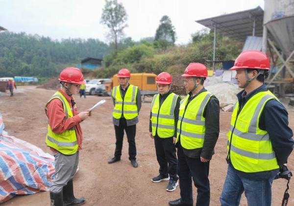 茍仕聰針對檢查中發現的問題提出四點要求:1.繼續抓好安全工作。如運渣車、混凝土罐車都要有車牌和保險,施工現場要增設警示牌、布置警戒帶。2.務必加強配屬隊伍管理管控。3.加強質量管理工作。如鋼管焊接要保證質量和工藝。4.加強與業主、監理、設計、審計的溝通。