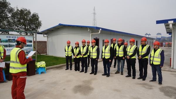 慰問困難職工后,鐘杰董事長一行又驅車深入岷江虎渡溪航電樞紐工程項目慰問一線干部職工并檢查指導工作,向春節期間堅守崗位的干部職工表示新春慰問和祝福,并送上慰問品。之后,在公司黨委書記、董事長代勇,總經理袁斌,副總經理茍仕聰、鄒世界及省水利設計院公司三分院副院長單智杰、項目設總鐘鴻等陪同下,察看了營地建設,接受安全告知后,深入到廠房前池、一期閘壩工程、拌和站等現場檢查指導工作,詳細察看和了解安全生產、進度質量、文明施工、環保水保等相關工作情況,對拌和系統布置、自動化程度、管理制度給予了肯定和贊揚,并對提前做好安全度汛等工作做出要求。
