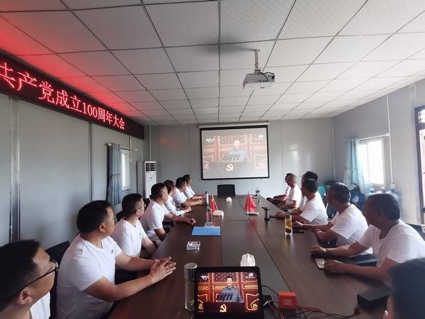 2021年7月1日上午8時,慶祝中國共產黨成立100周年大會在北京天安門廣場隆重舉行,雄壯的國歌聲響徹廣場,鮮艷的五星紅旗冉冉升起。工程局公司總部及各基層單位積極組織全體干部職工收看慶祝大會直播盛況,各項目部克服場地條件困難,通過電腦、手機等設備在項目工地集中收看直播。