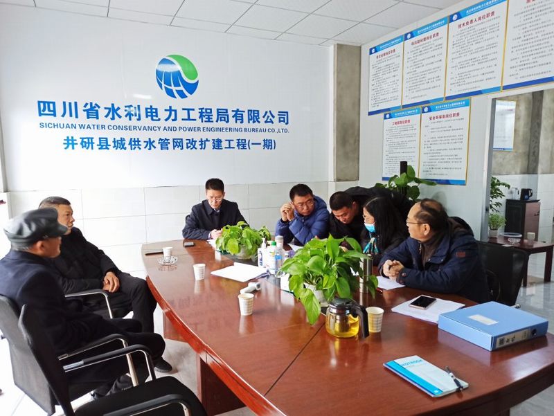 1月19日,省水發集團副總經理隆文非帶隊對工程局公司承建的井研縣城供水管網改擴建(一期)工程進行節前安全檢查,井研縣興業供水有限責任公司董事長謝平、常務副總經理夏兵、黨支部書記左明友、副總經理劉仁杰等陪同檢查。