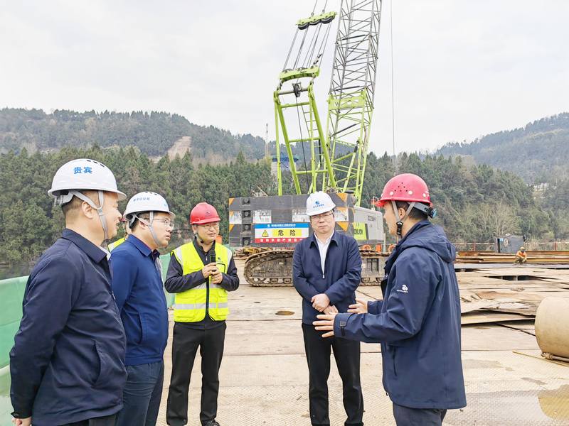 楊志文一行深入建設公司承建的觀音寺渡槽施工現(xiàn)場,實地察看了數(shù)字化鋼筋綜合加工廠、中心實驗室、空心墩墩身、鋼棧橋等位置,同時聽取項目管理人員對亭子口灌區(qū)一期工程I標段工程概況、關鍵性工程觀音寺渡槽概況的匯報,詳細了解了項目的建設進展、數(shù)字化運用、質(zhì)量管理、配套設施等實際情況,并就項目的規(guī)劃設計、施工方法、建設意義等方面進行了探討交流。