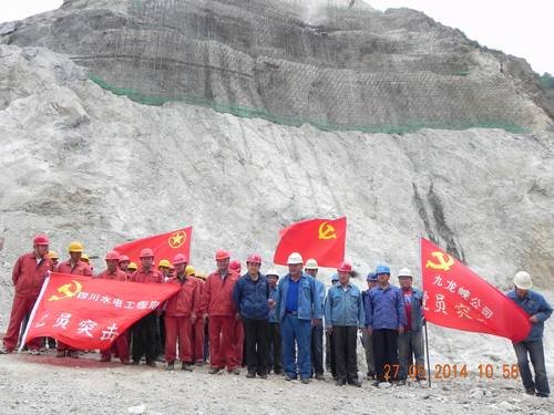 6月27日上午11時,甘肅省迭部縣九龍峽電站業主九龍峽公司、監理部、四川省水利電力工程局九龍峽電站樞紐工程項目經理部黨員及參戰員工來到大壩樞紐施工現場,面對熱火朝天的施工場面,舉行了黨員先鋒隊宣誓儀式。