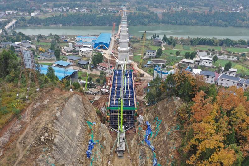 觀音寺渡槽橫跨嘉陵江一級支流東河,全長840m,最大架空高度65m,是I標段最長、架空高度最高、施工難度最大的渡槽。槽身設計為20跨,槽身模板采用鋼管柱+貝雷梁支架方案,應用于部分槽身。