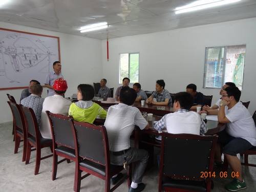 2014年6月4日上午10時30分,筠連縣副縣長張三印、筠連縣人大副主任晉方全、筠連縣煙草公司副局長葉勇、筠連縣煙草公司煙稽辦主任趙曉衛、筠連縣煙辦主任詹本華、筠連縣后溝水庫指揮部辦公室主任陳大均、業主方代表張長興、監理方代表羅立、筠連縣團林鄉政府黨委書記艾勇、筠連縣團林鄉人大主席郭仕勇、筠連縣團林鄉鄉長王永才等一行蒞臨后溝水庫項目部考察工程進展情況,整個考察過程由項目部副經理周加利陪同。
