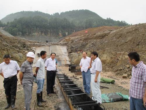 2014年9月12日,水利廳總工程師梁軍一行冒雨到我局承建施工的天星橋水庫項目檢查指導工作。