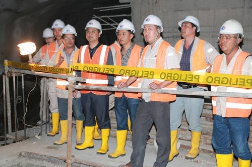 經過兩天17000公里的長途飛行,在抵達厄瓜多爾TP項目部后,鄔局長不顧旅途勞累和時差影響,在項目部經理高代勝、副經理楊聰明、李靜、王安明等項目相關人員陪同下,先后到取水口閘壩樞紐、壓力隧洞進出口、地下廠房、尾調室、泄水洞等施工現場察看,詳細了解施工技術方案、設備、材料、人員,特別是厄瓜多爾當地勞務人員等具體情況,并不時提出指導意見。