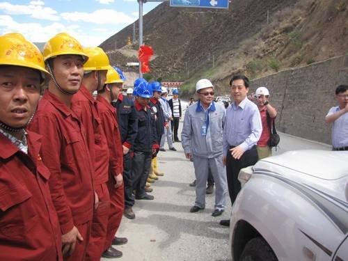2015年5月27日下午3時,中國大唐集團公司總經理王野平一行蒞臨鄉城洞松水電站視察。我局常務副局長董蜀良、洞松水電站首部樞紐現場負責人曹軍陪同檢查。