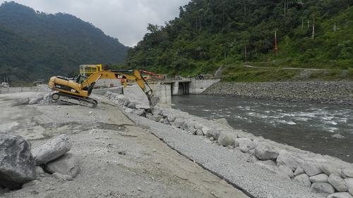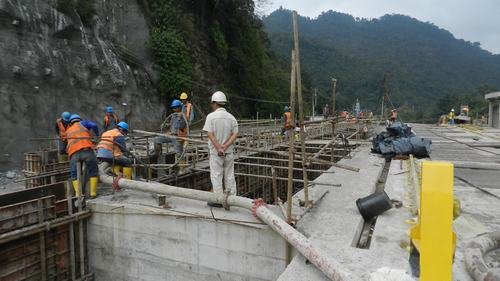 在局第二工程處全體參戰(zhàn)人員共同奮戰(zhàn)下,厄瓜多爾當(dāng)?shù)貢r(shí)間2015年8月15日22:30分,由工程局承建的厄瓜多爾TP水電站取水口閘壩工程,最后一倉混凝完美收倉。至此,標(biāo)志著該閘壩工程主體混凝土澆筑已全部結(jié)束,全面進(jìn)入收尾階段。