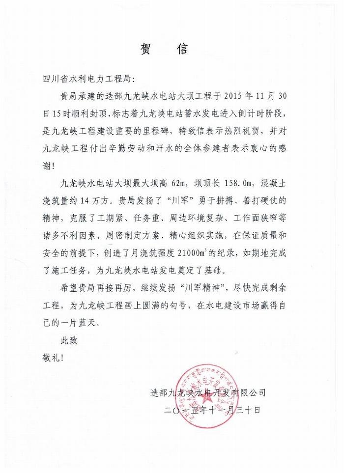隨后,甘肅九龍峽公司董事長(zhǎng)楊利民和引大監(jiān)理公司總監(jiān)徐全明分別致辭,并向工程局致賀信祝賀。