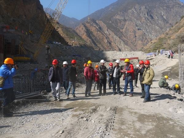 2016年1月19日下午,由華電集團(tuán)云南魯?shù)乩靖笨偨?jīng)理魏永新、烏江項(xiàng)目公司副總工程師黃鵬、孫華剛、雜谷腦公司辦公室主任李曉莉、梨園電站計(jì)劃部主任鄭修軍、華電集團(tuán)公司項(xiàng)目經(jīng)理邵增富、華電國(guó)際四川分公司基建部副主任李宏國(guó)、四川公司基建部專責(zé)李勇等人組成的專家組,在水洛河公司固滴建管部主任楊樂(lè)、新藏建管部主任何宇、博瓦建管部主任楊杰及固滴設(shè)計(jì)、監(jiān)理等一行的帶領(lǐng)下,蒞臨固滴電站首部樞紐工程施工現(xiàn)場(chǎng)對(duì)2015年度工程建設(shè)達(dá)標(biāo)投產(chǎn)進(jìn)行檢查,考核內(nèi)容包括現(xiàn)場(chǎng)安全文明施工、土建工程質(zhì)量與工藝,局鑫宏工程公司經(jīng)理毛偉、黨支部書(shū)記甘曉華、項(xiàng)目部總工鄭中華全程陪同。