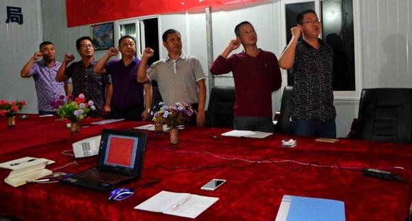 各項目部宣誓儀式由范雪山處長領誓,主要管理人員參加宣誓,各班組長及部分管理人員列席儀式。