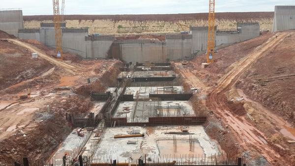 截止6月底:廠房全年縱向混凝土圍堰已全部完成澆筑,正在填筑廠房全年橫向圍堰,完成廠房6臺機(jī)組底板澆筑,廠房右邊墻澆筑最大高度達(dá)20m。本月完成混凝土澆筑2.47萬方。